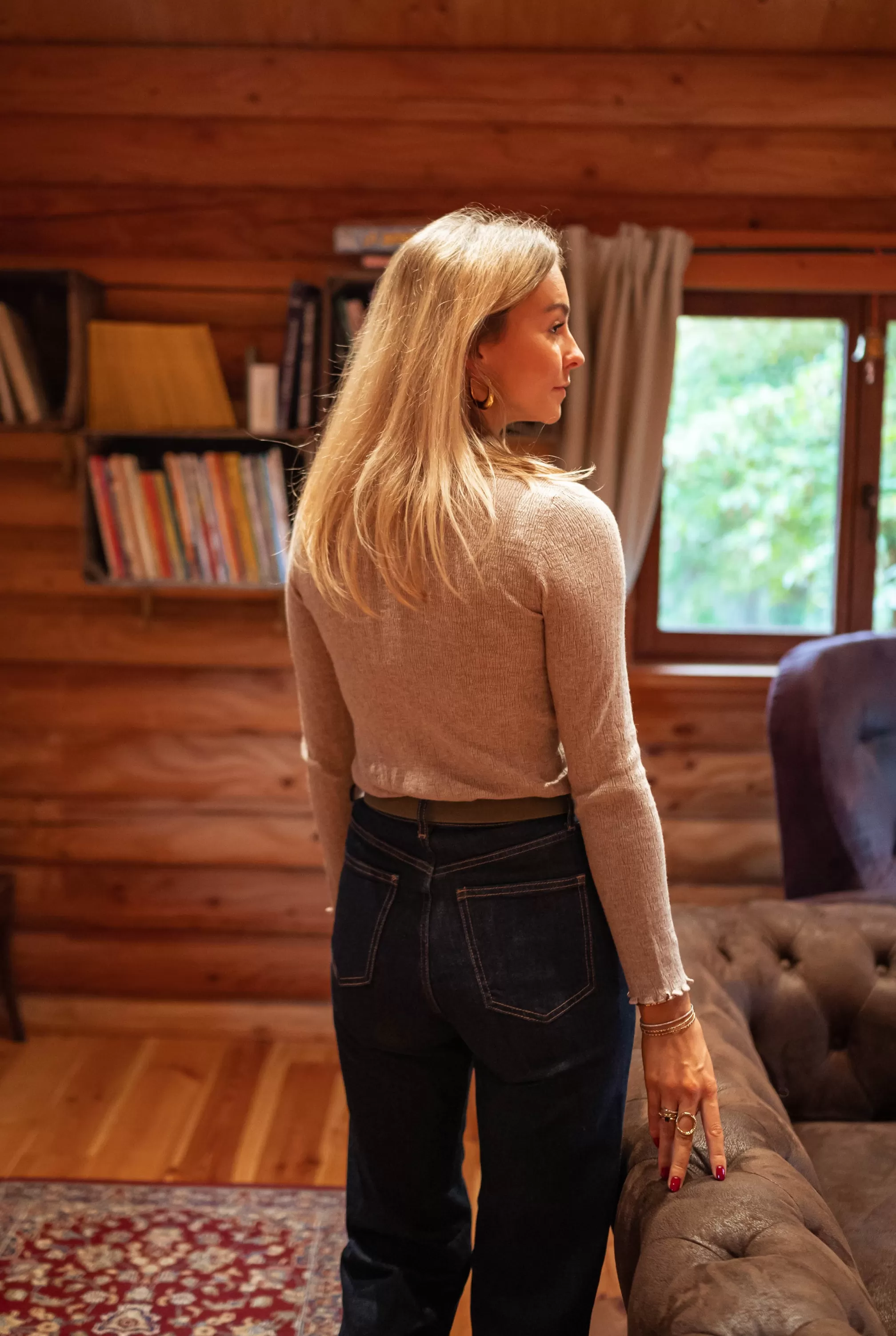 Long sleeves SoftColors : beigeOphélie is 1m68 and wears a size S-MSlightly mockneckPatt…