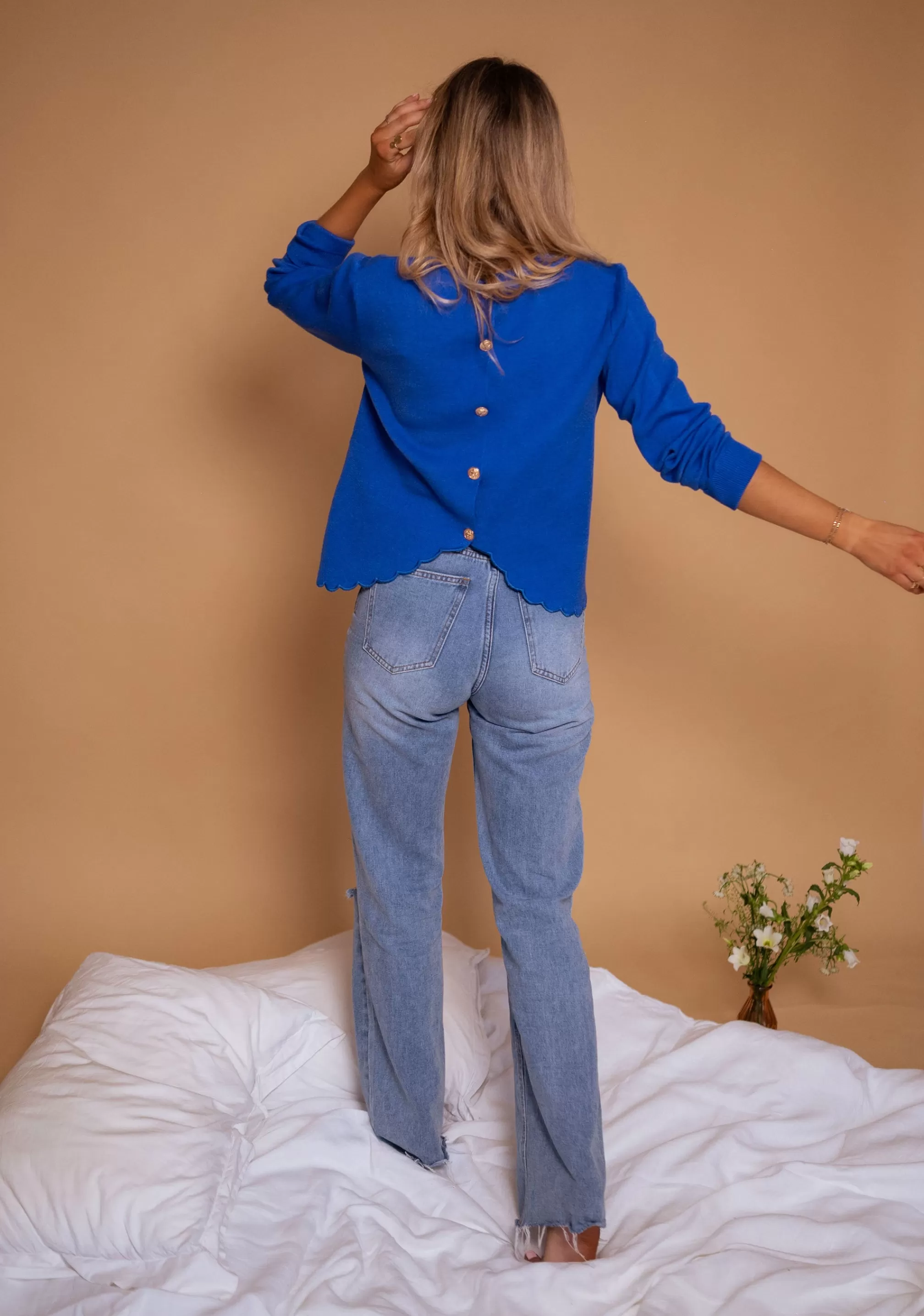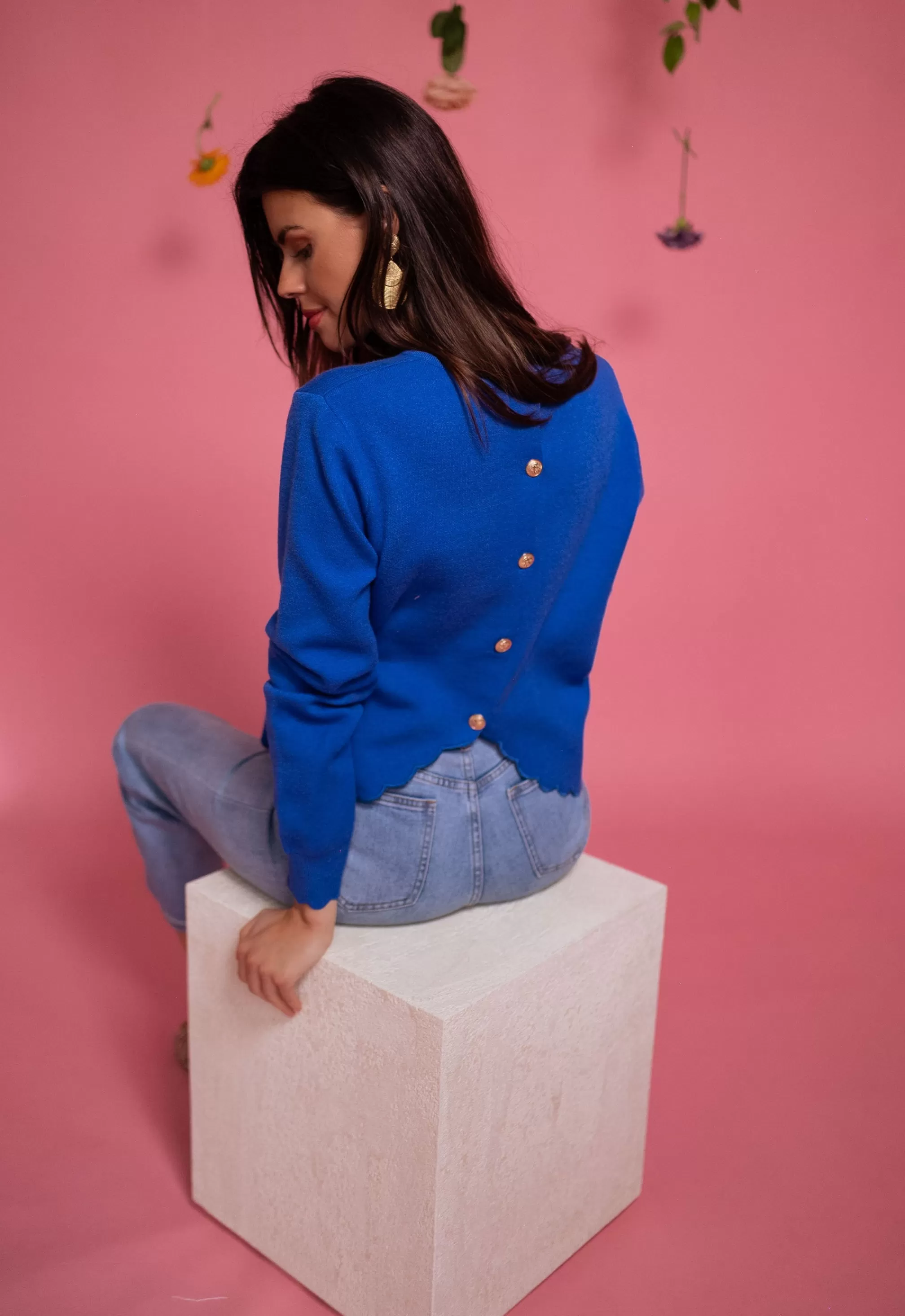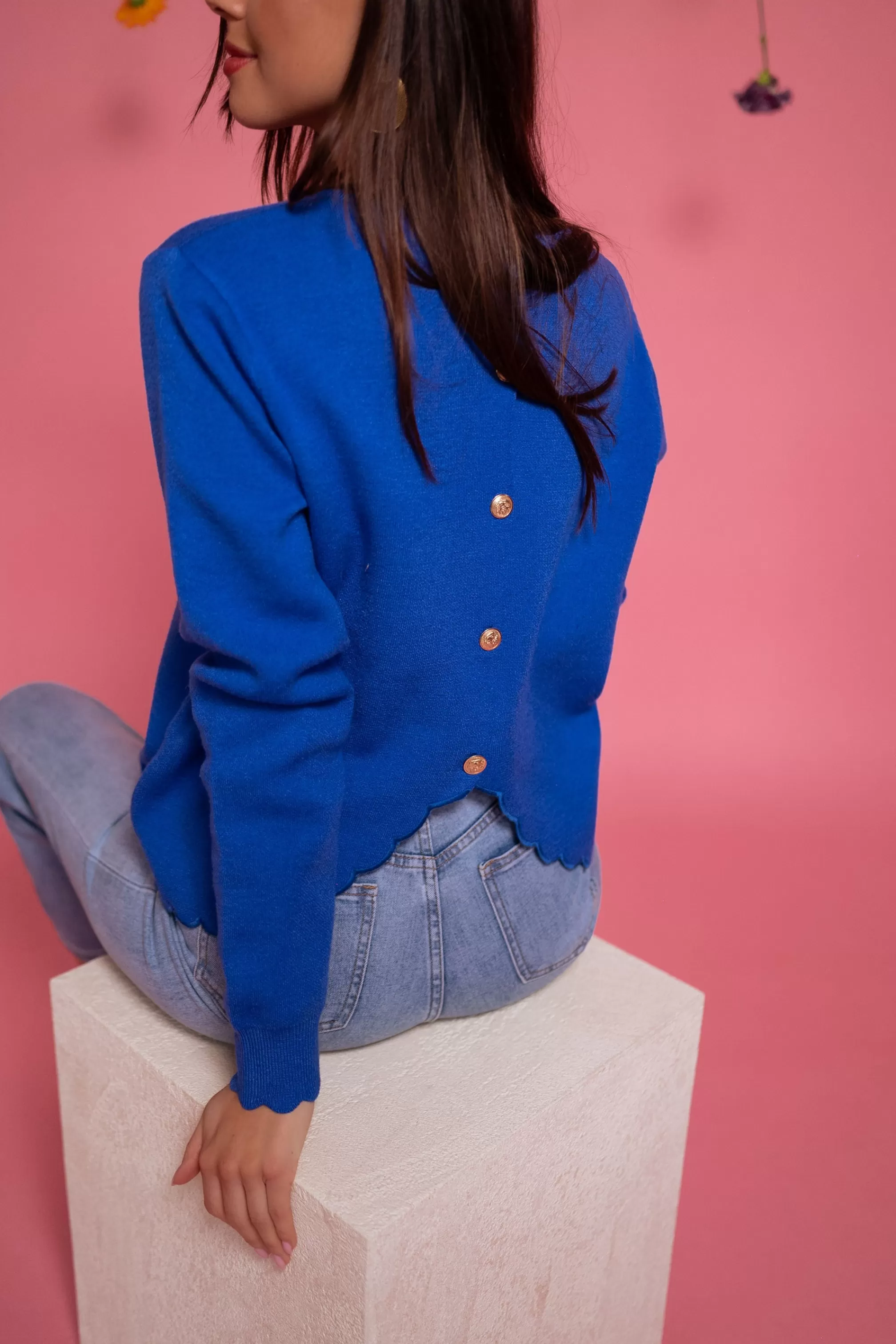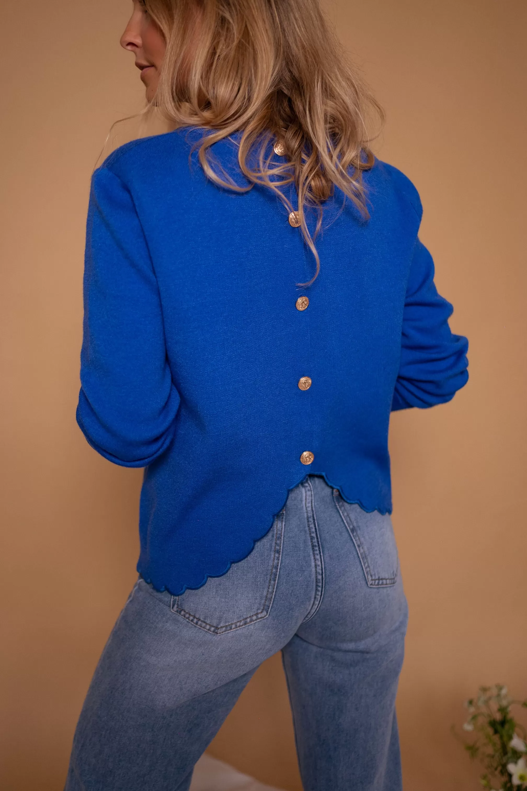 Cloud cutout at the bottom of the sweater and at the cuffsGolden buttons in the backOphelia is…