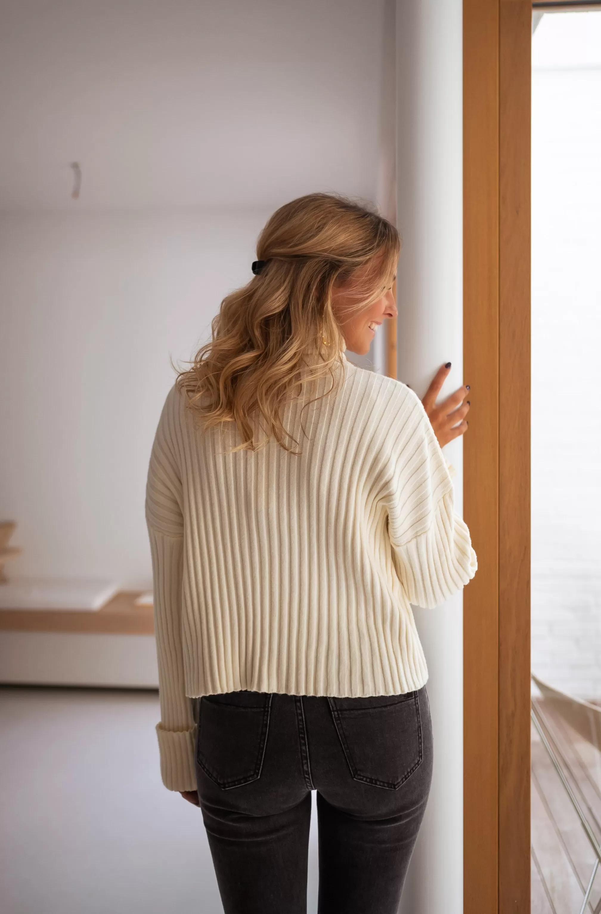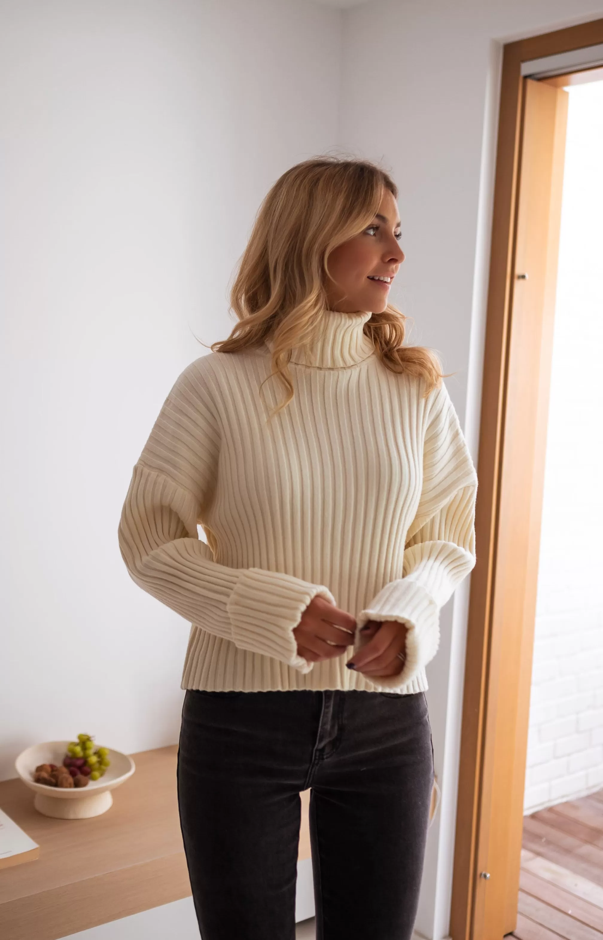 Long sleeves with edges Turtle neck Soft Straight cut Sizes : S-M / M-L&nb…