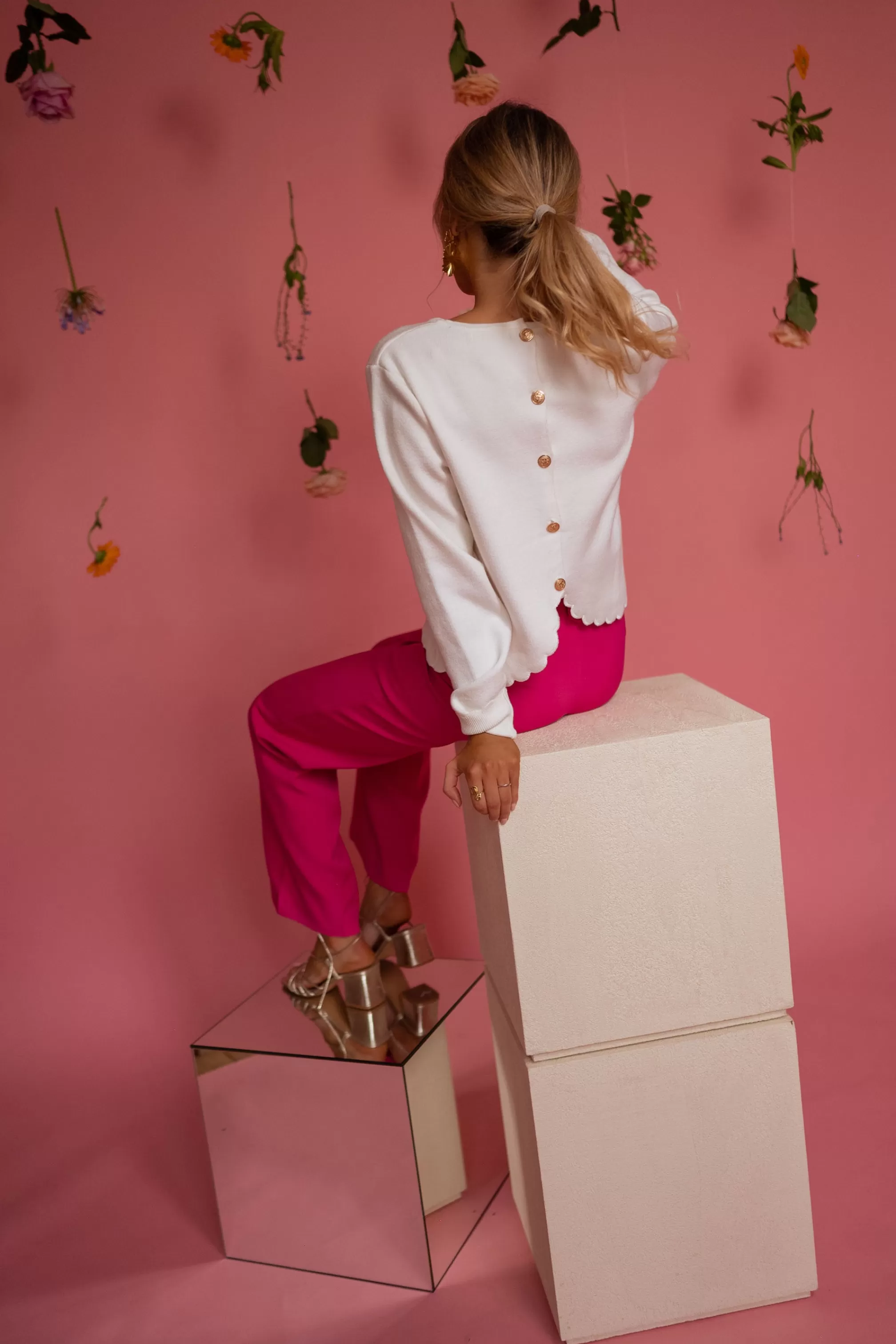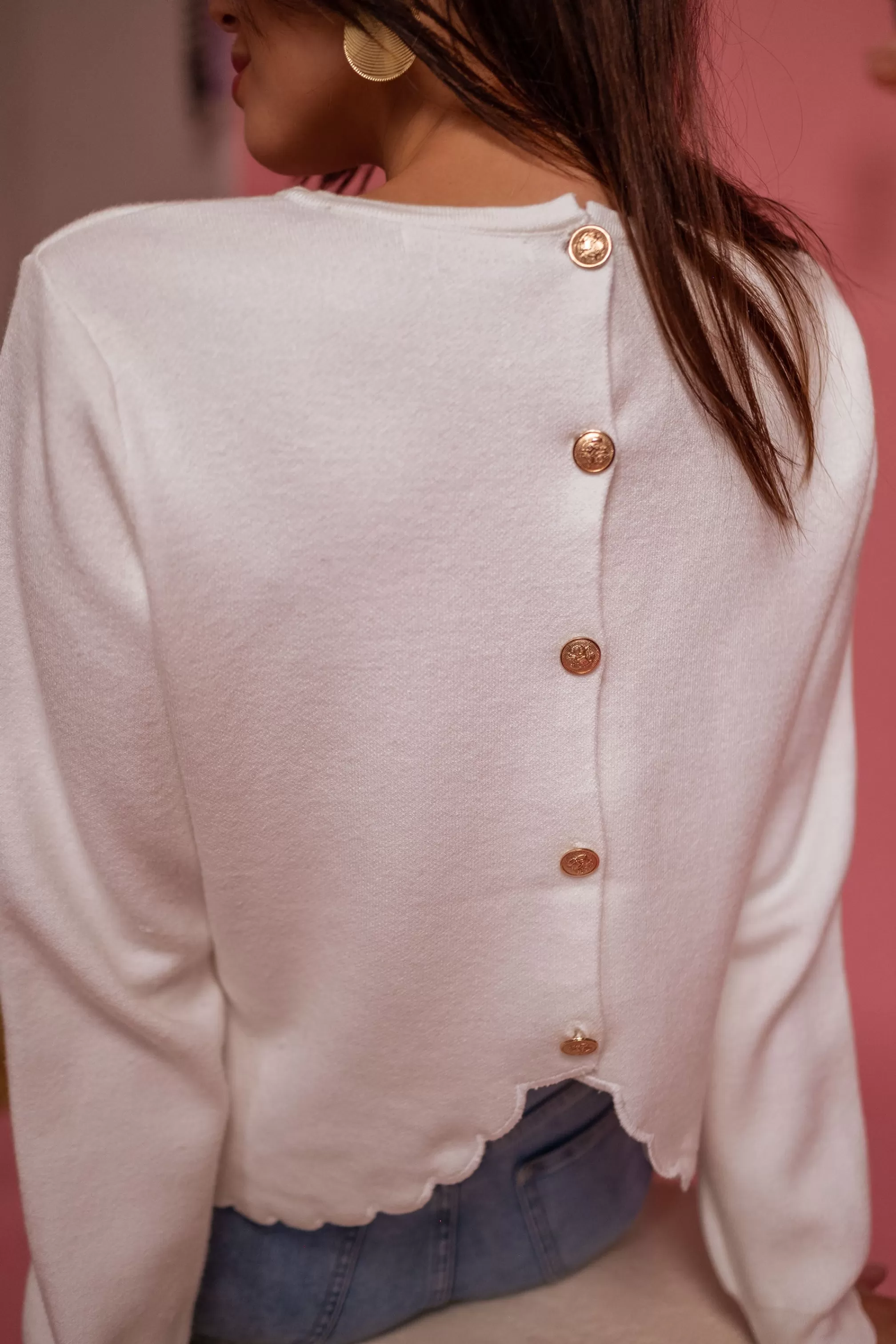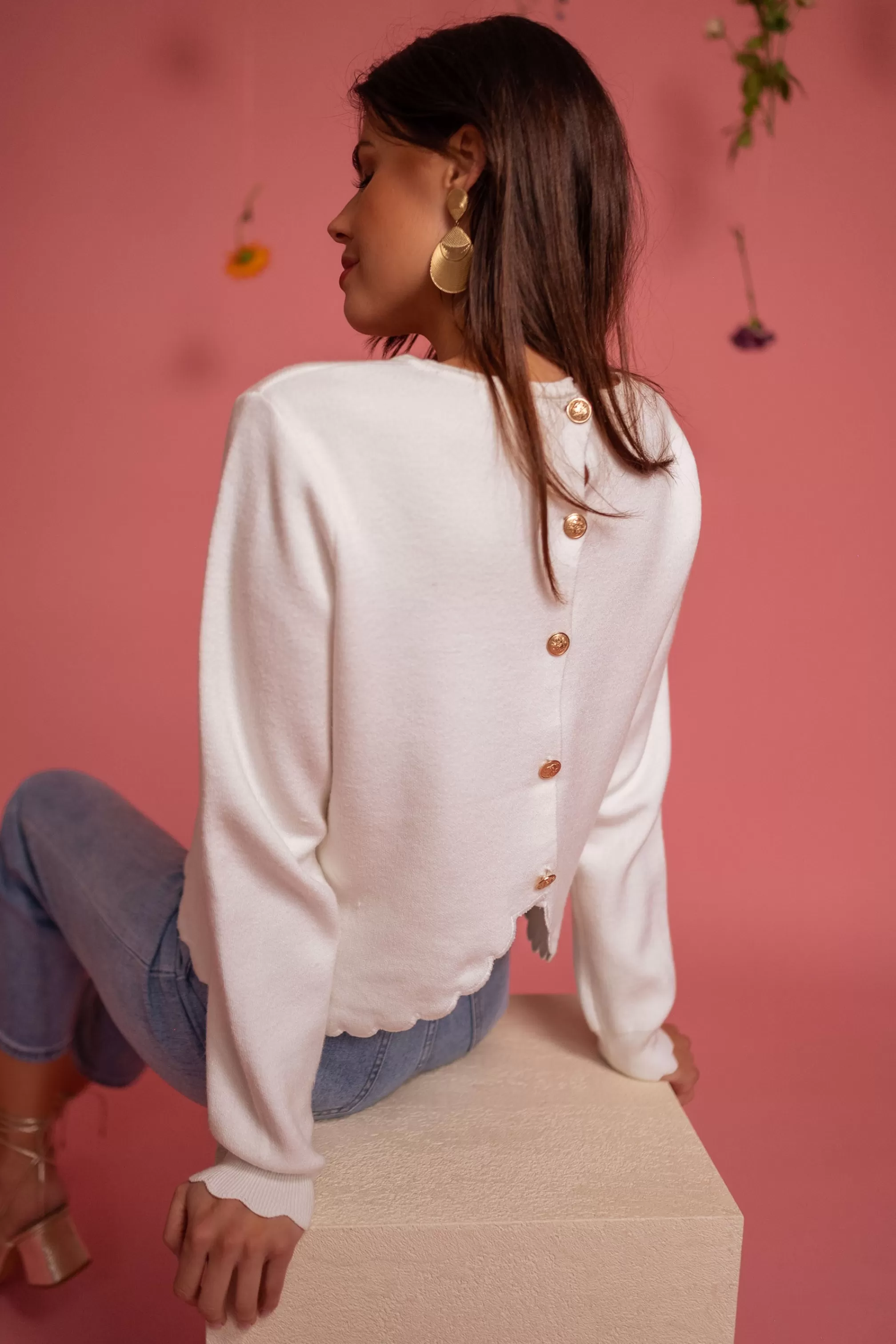 Cloud cutout at the bottom of the sweater and at the cuffsGolden buttons in the backOphelia is…
