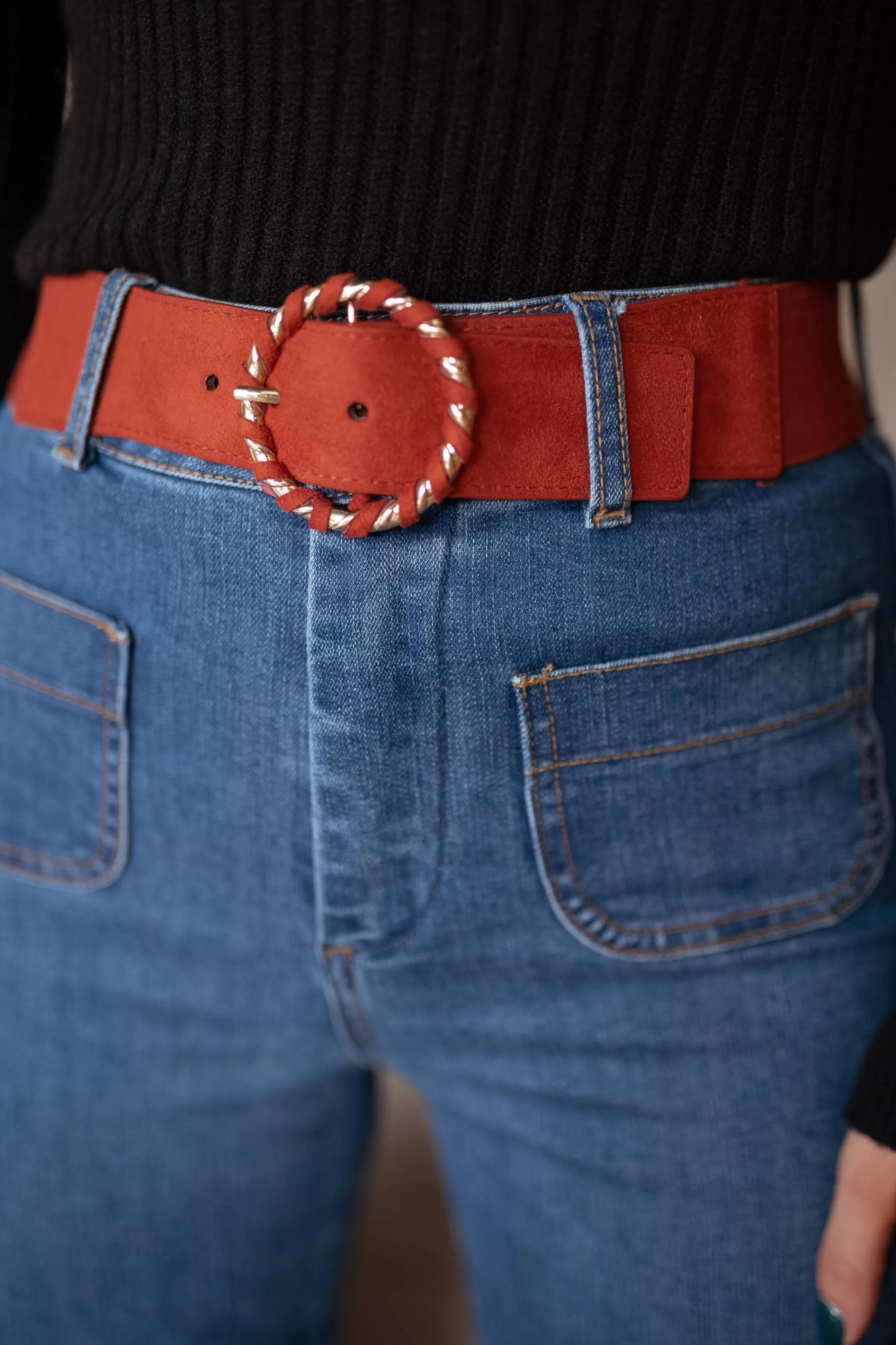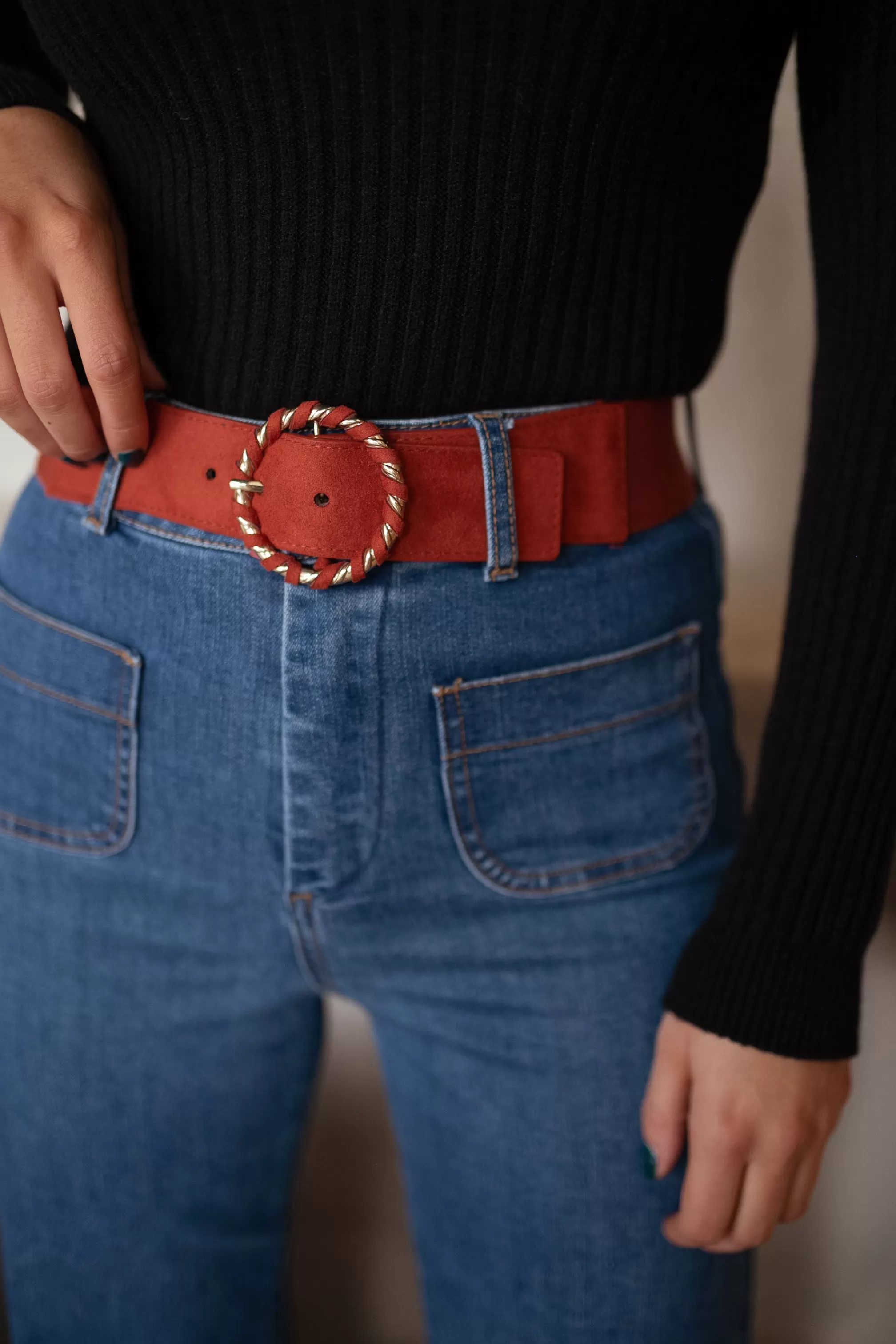 AdjustableSuede effectRound buckleElasticLength 75 cm – Width 5 cm …