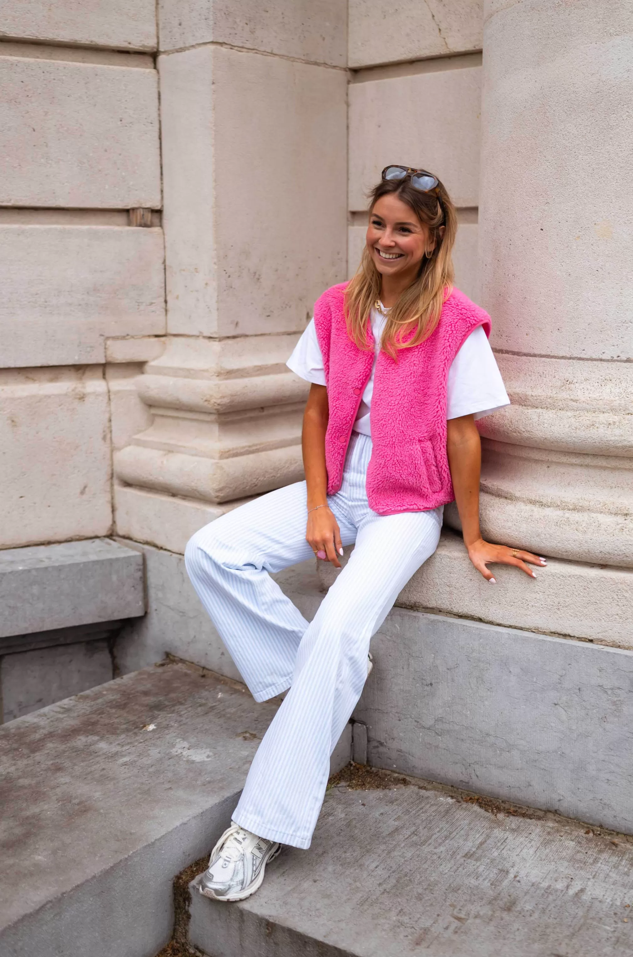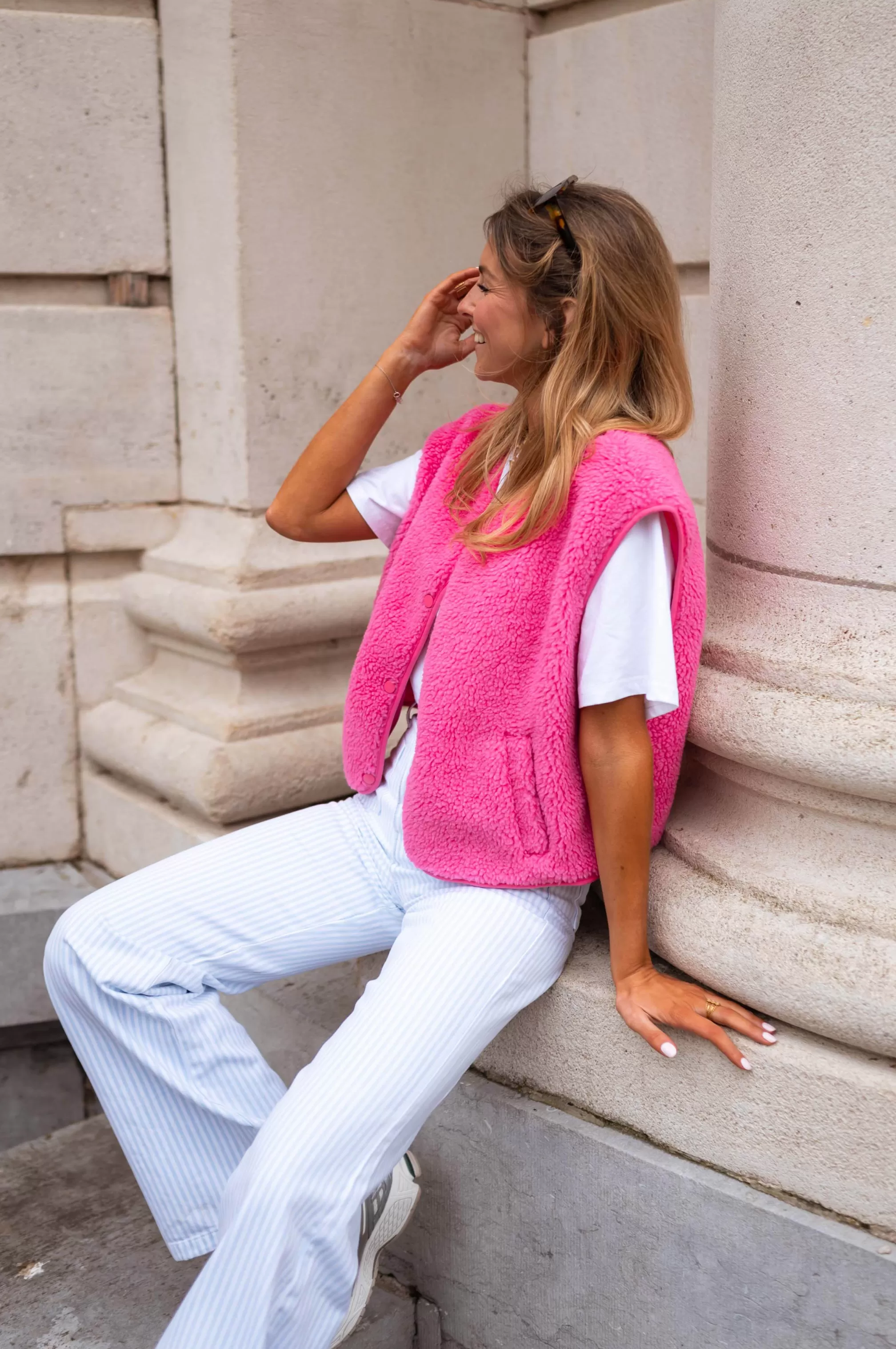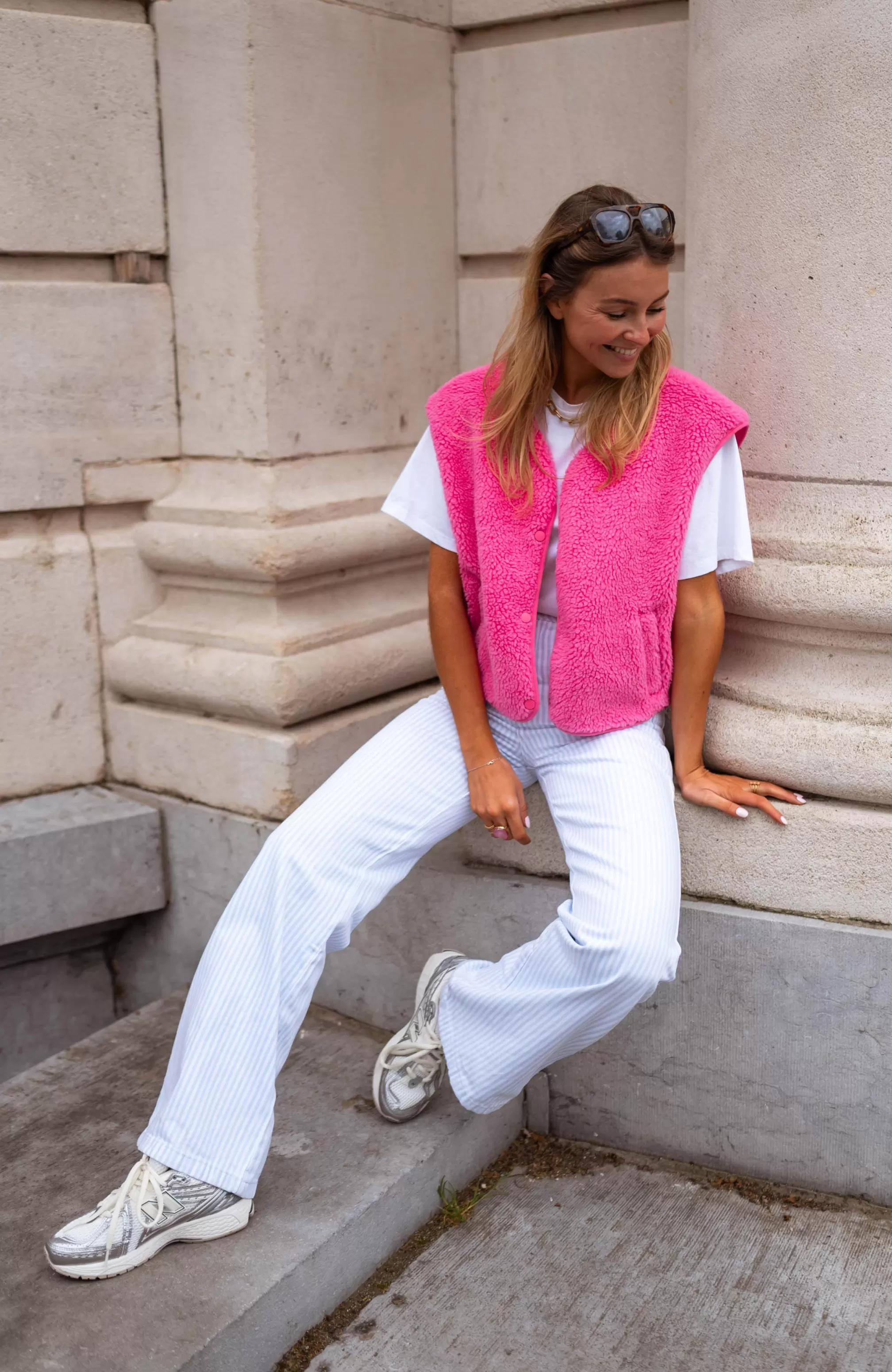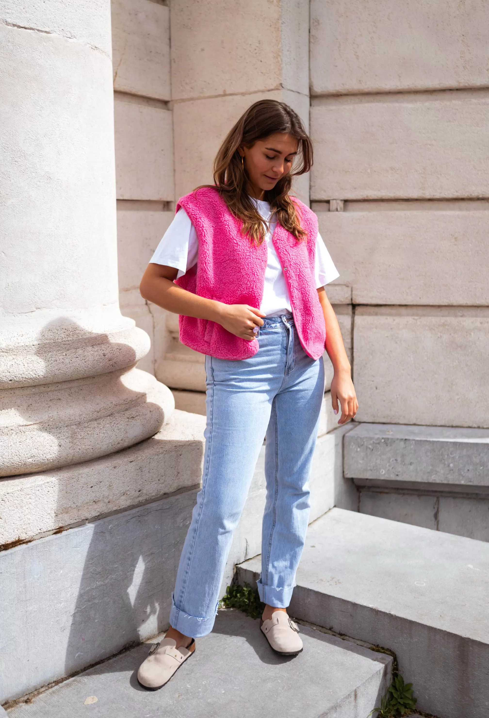 Faux sheep fur vestSleevelessOphélie is 1m68 and wears a size S-MManon is 1m69 and wears a si…