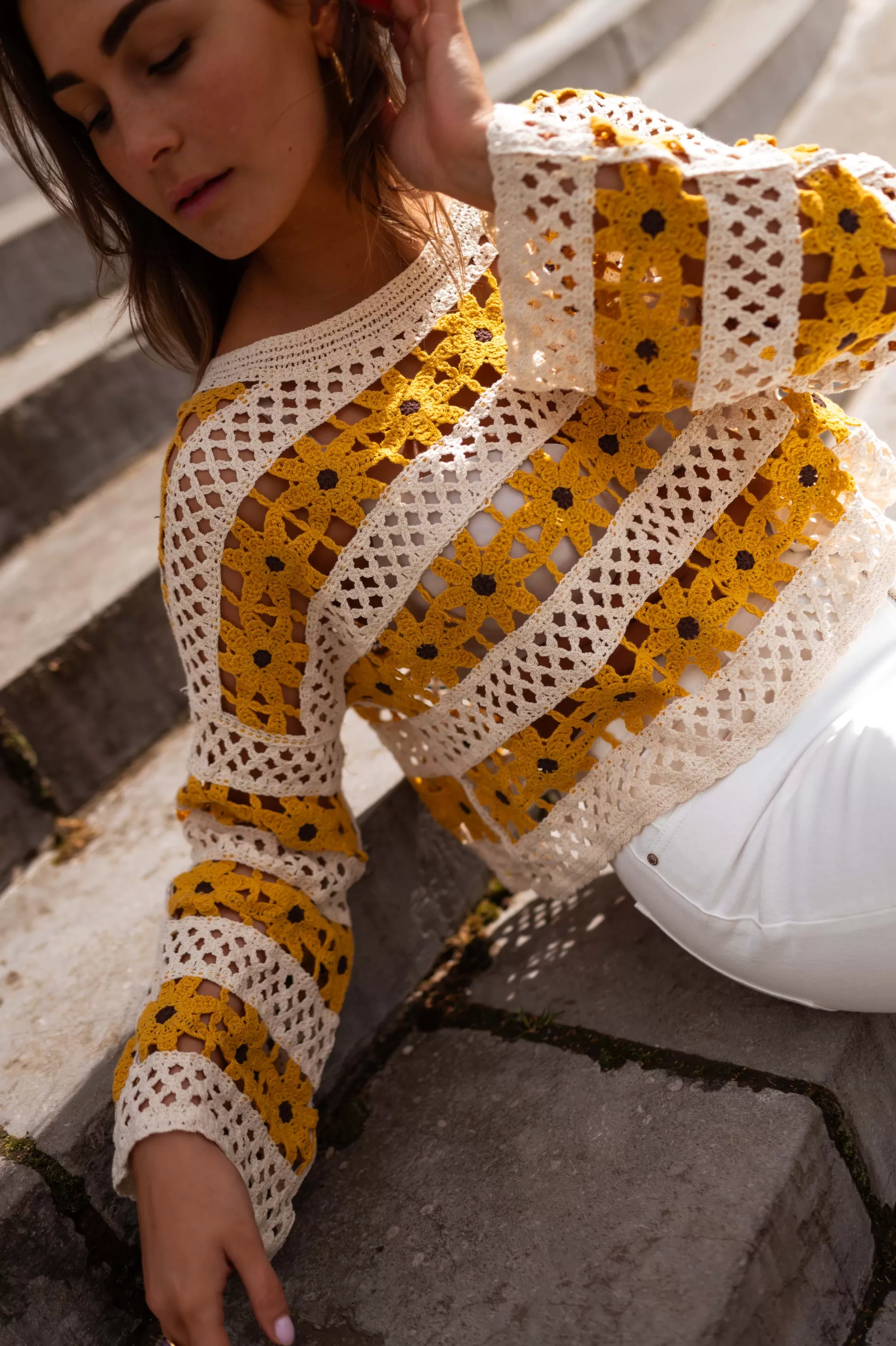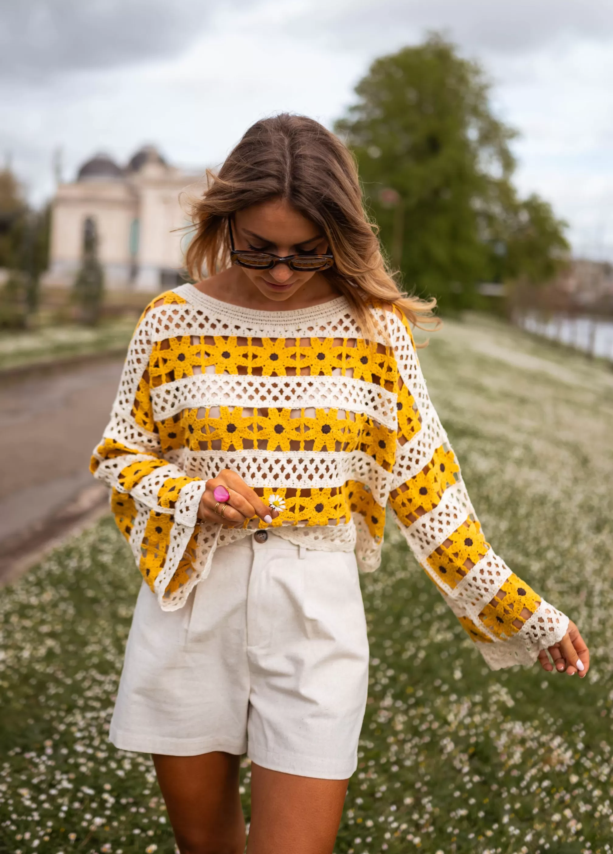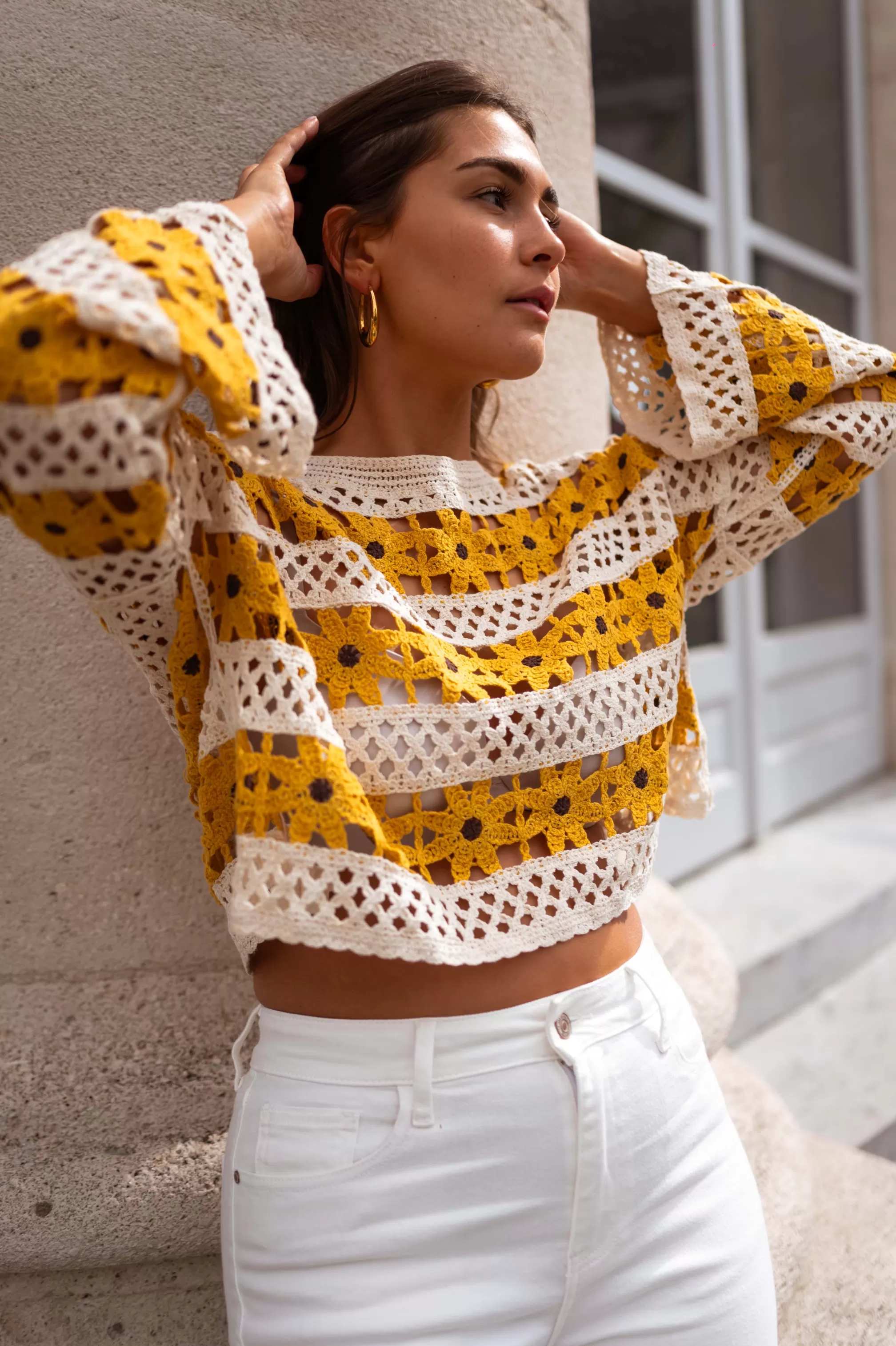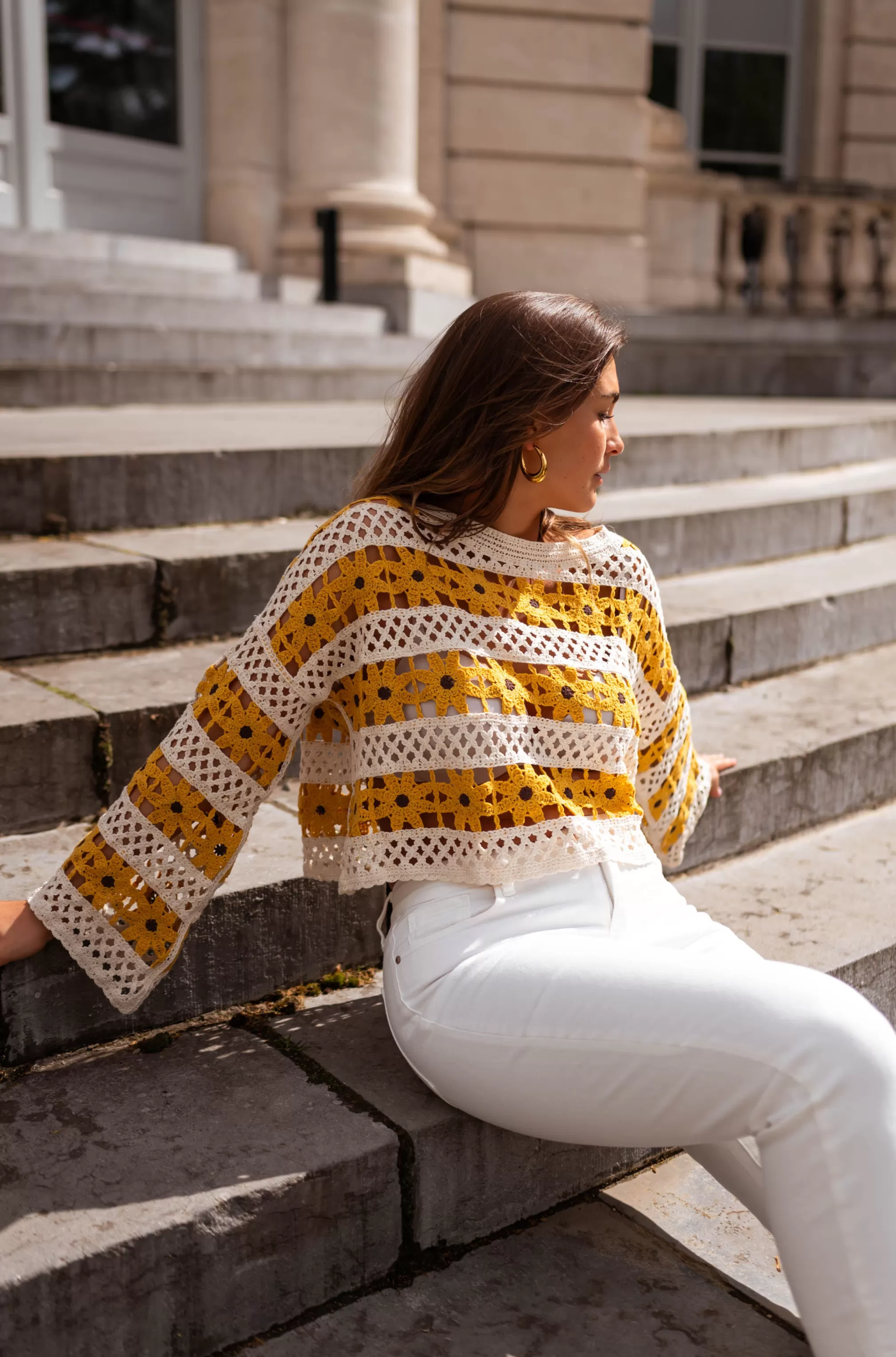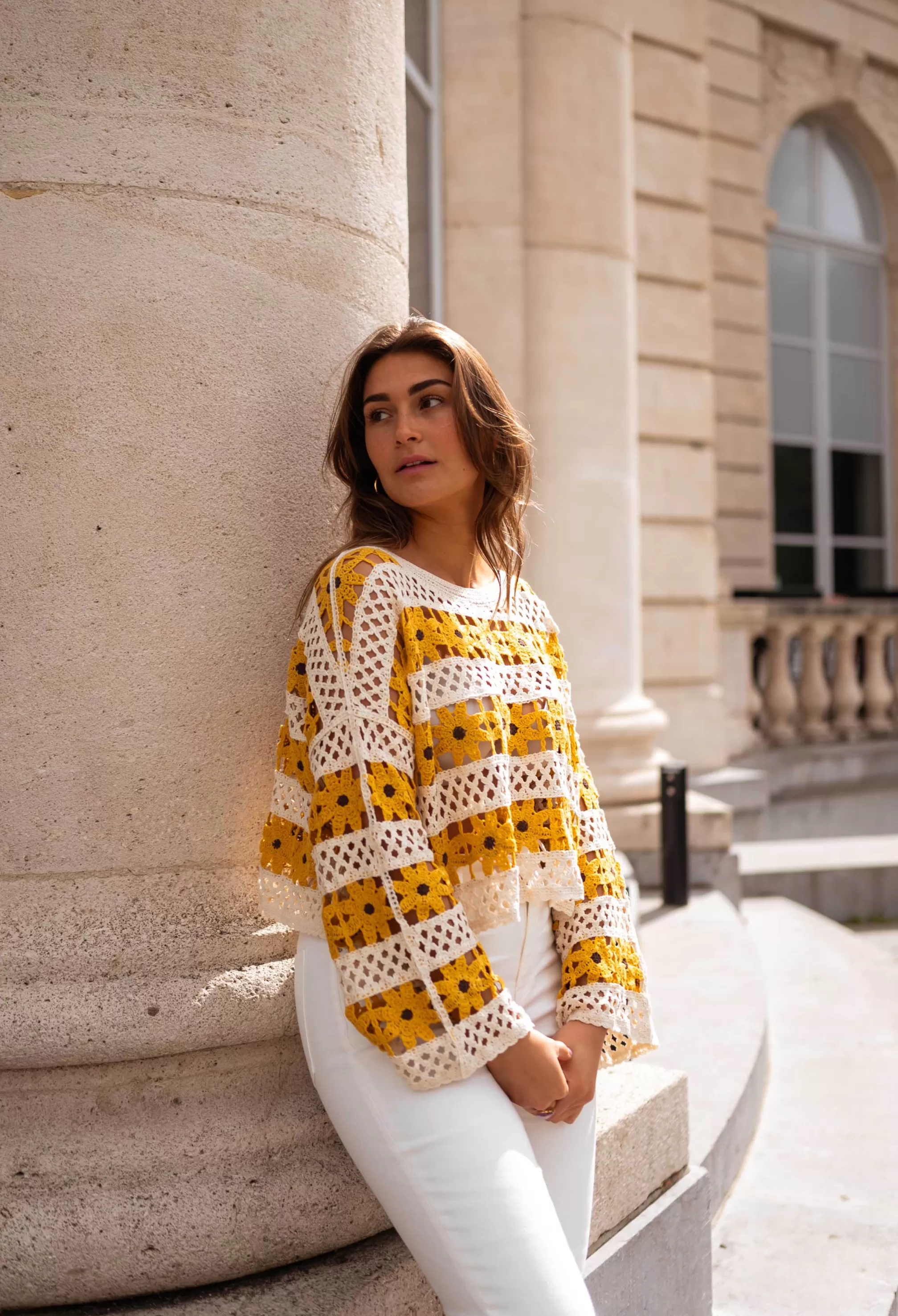 CrewneckEcru and yellow crochetOphélie is 1m68 and usually wears a size SManon is 1m69 and us…