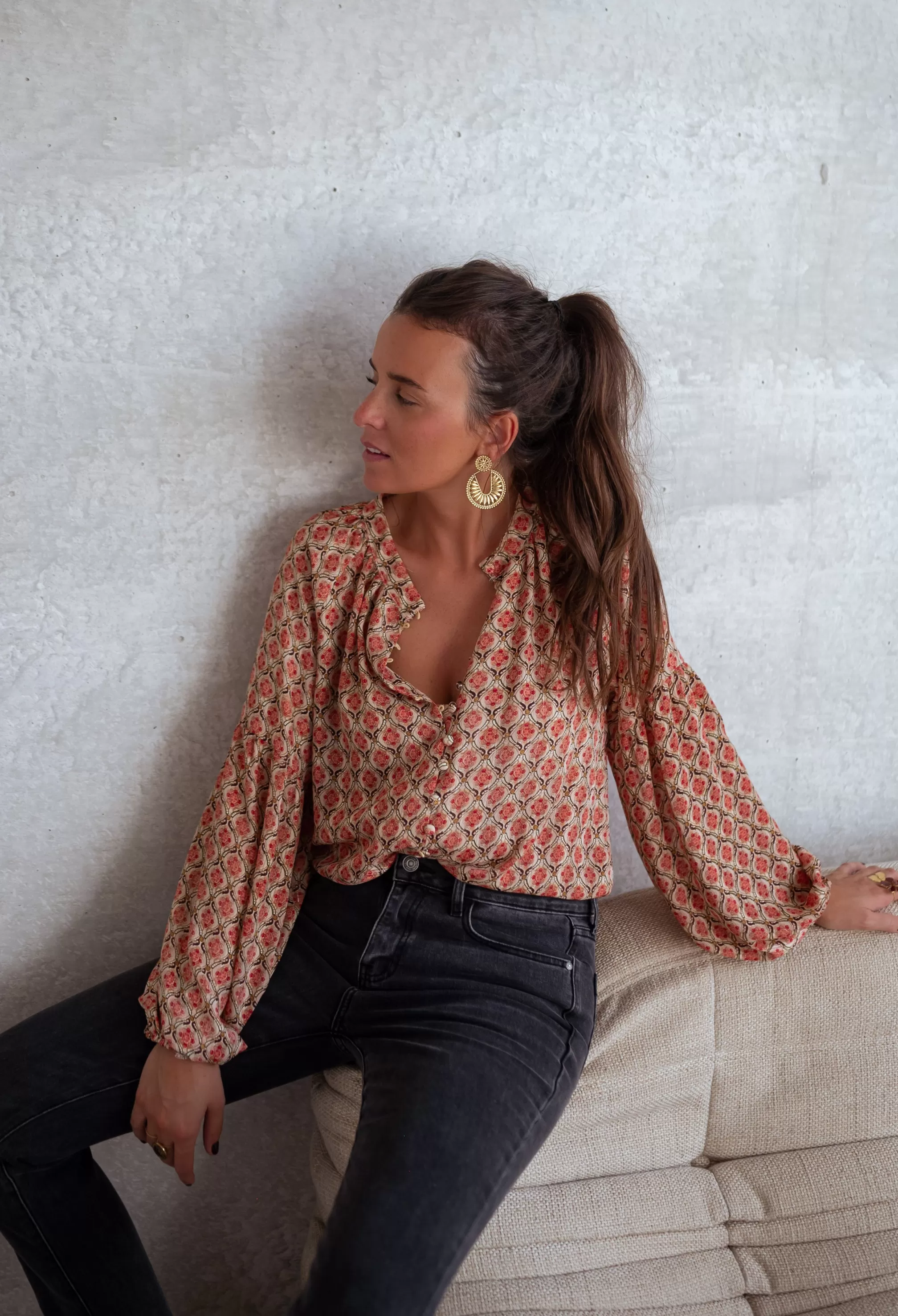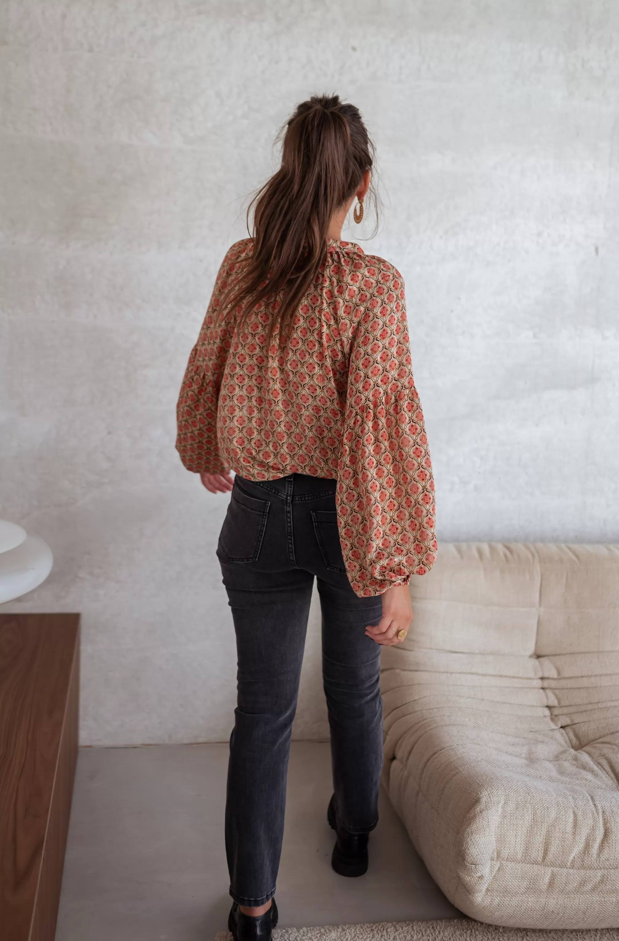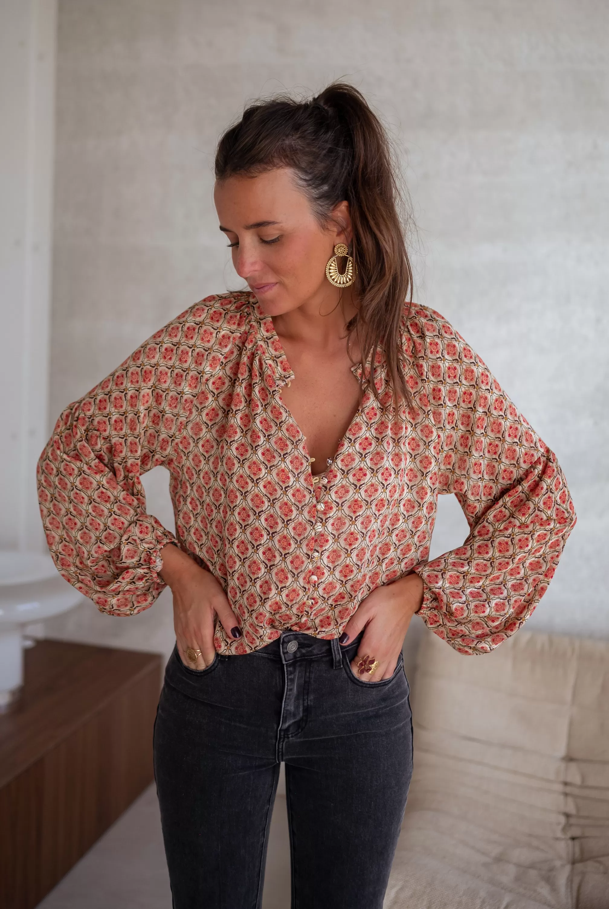 Long balloon sleevesElastic at the wristsFluidSilvery LurexButtons all along the blouse N…
