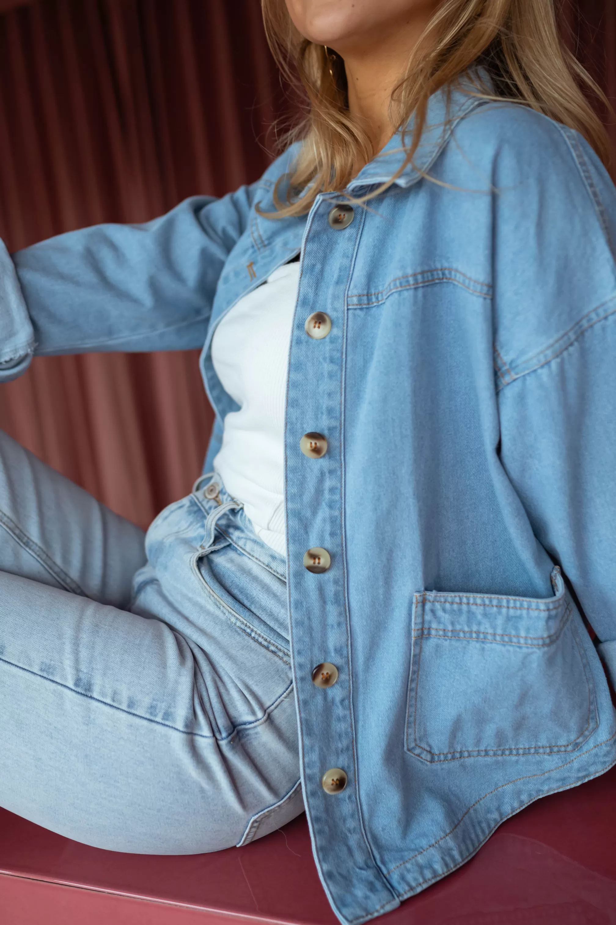 Long sleevesOphelie is 1m68 and wears a size S-MSilvery buttonsNot linedPockets at the frontSi…