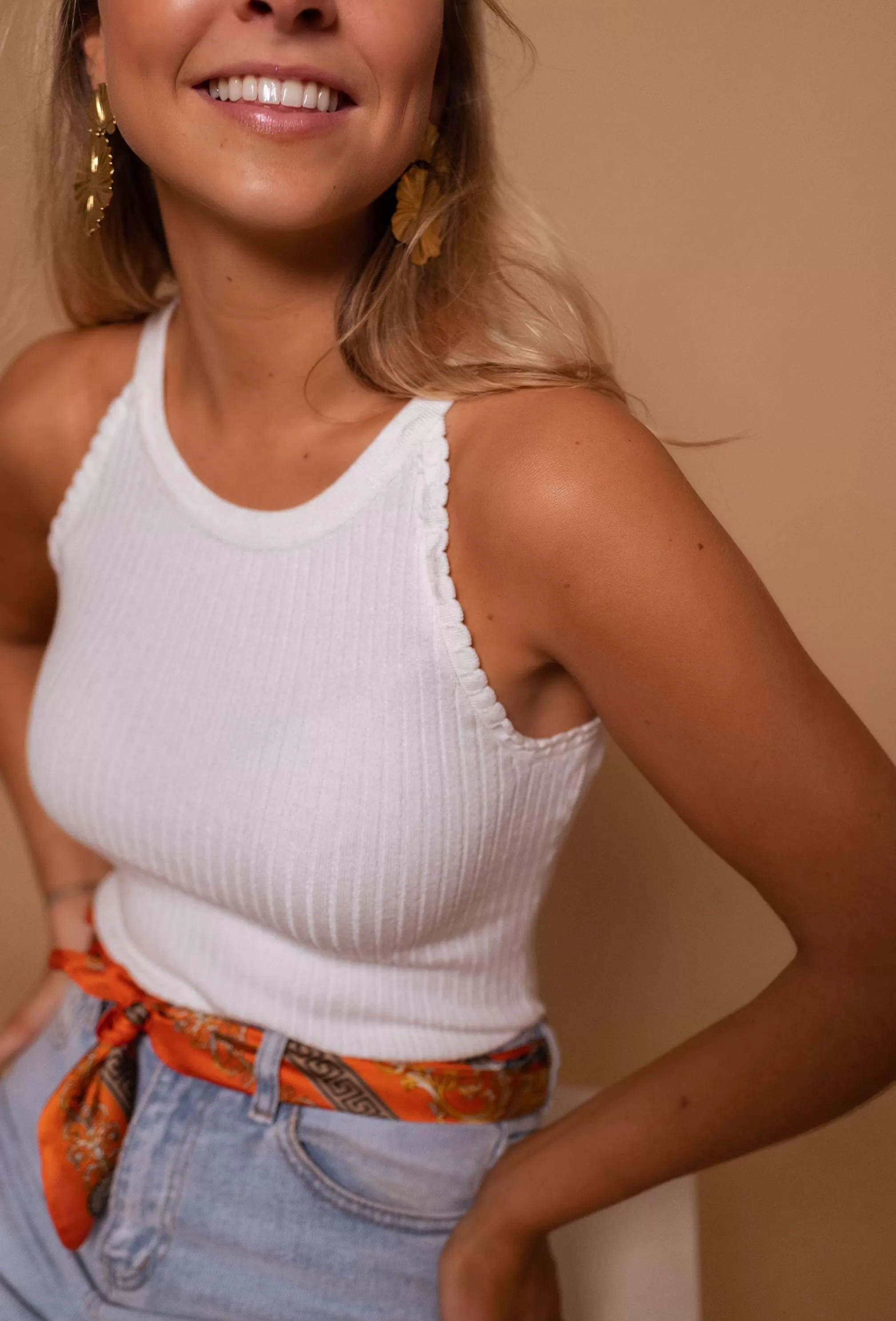 Top with indented shouldersOphelia is 1m68, Larissa is 1m74 and wear a size S-MHigh collarForm…
