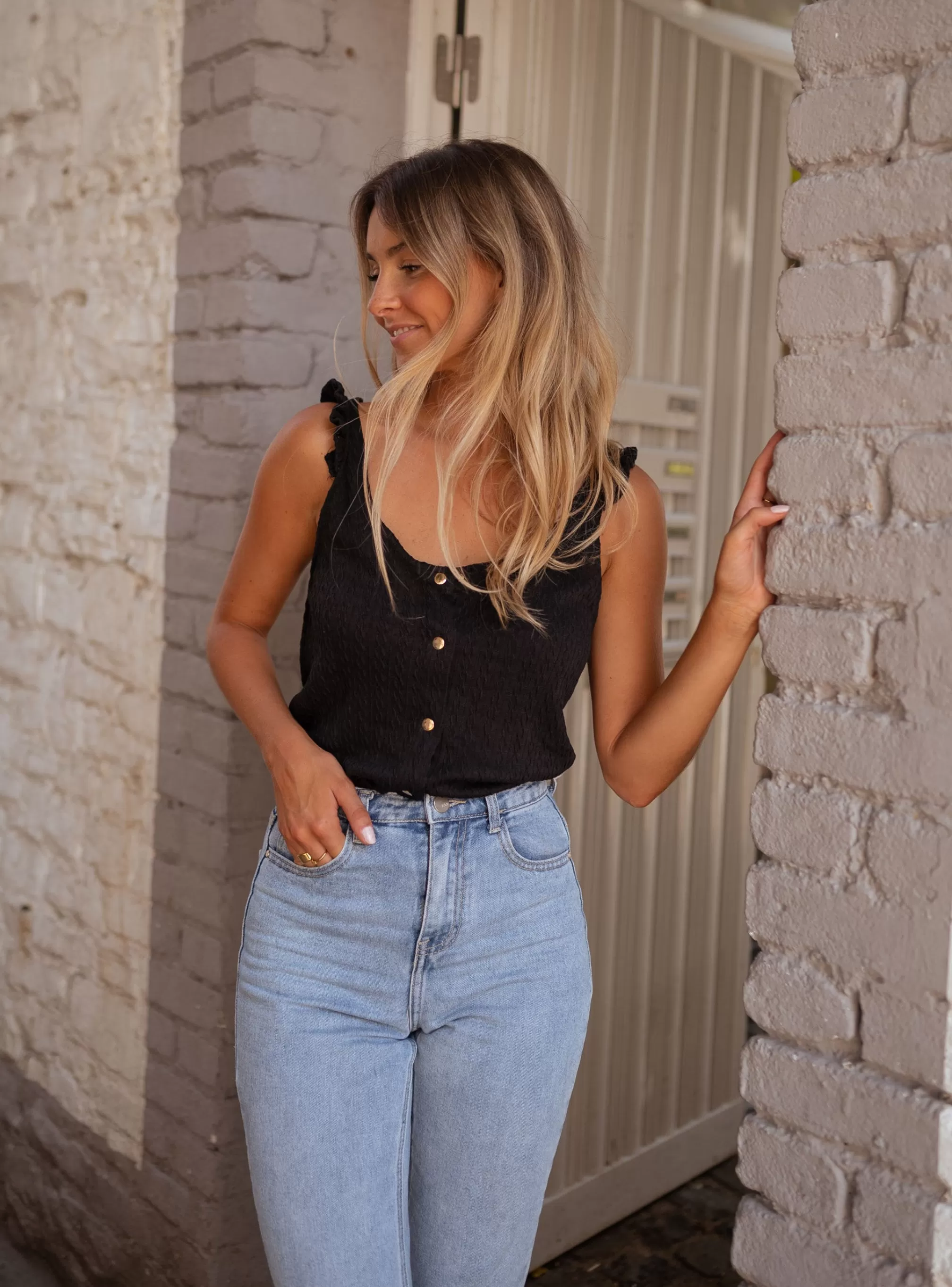 - Ruffle finish at the shoulders