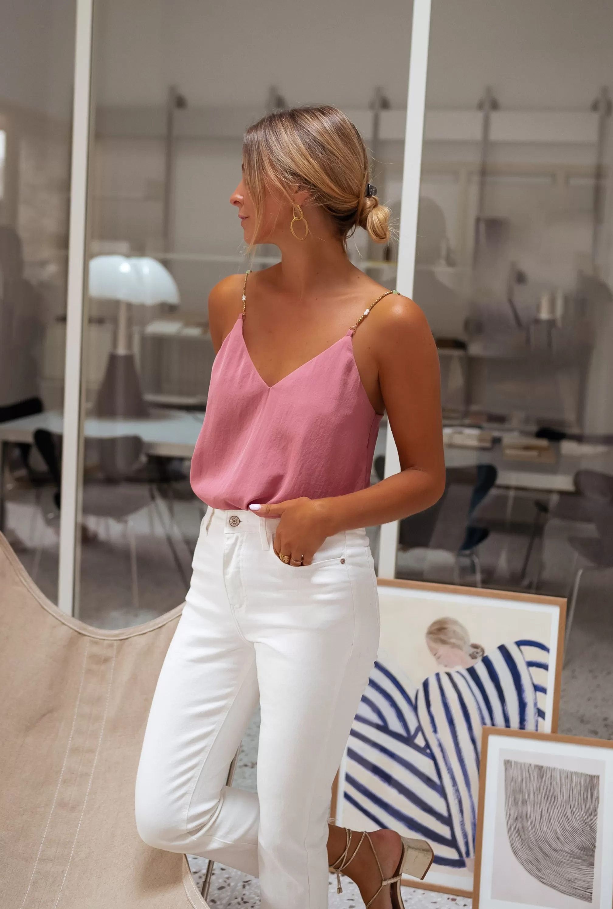 Pearl straps Non adjustable strapsOphélie is 1m68 and wears a size SLiningV-neck on the …