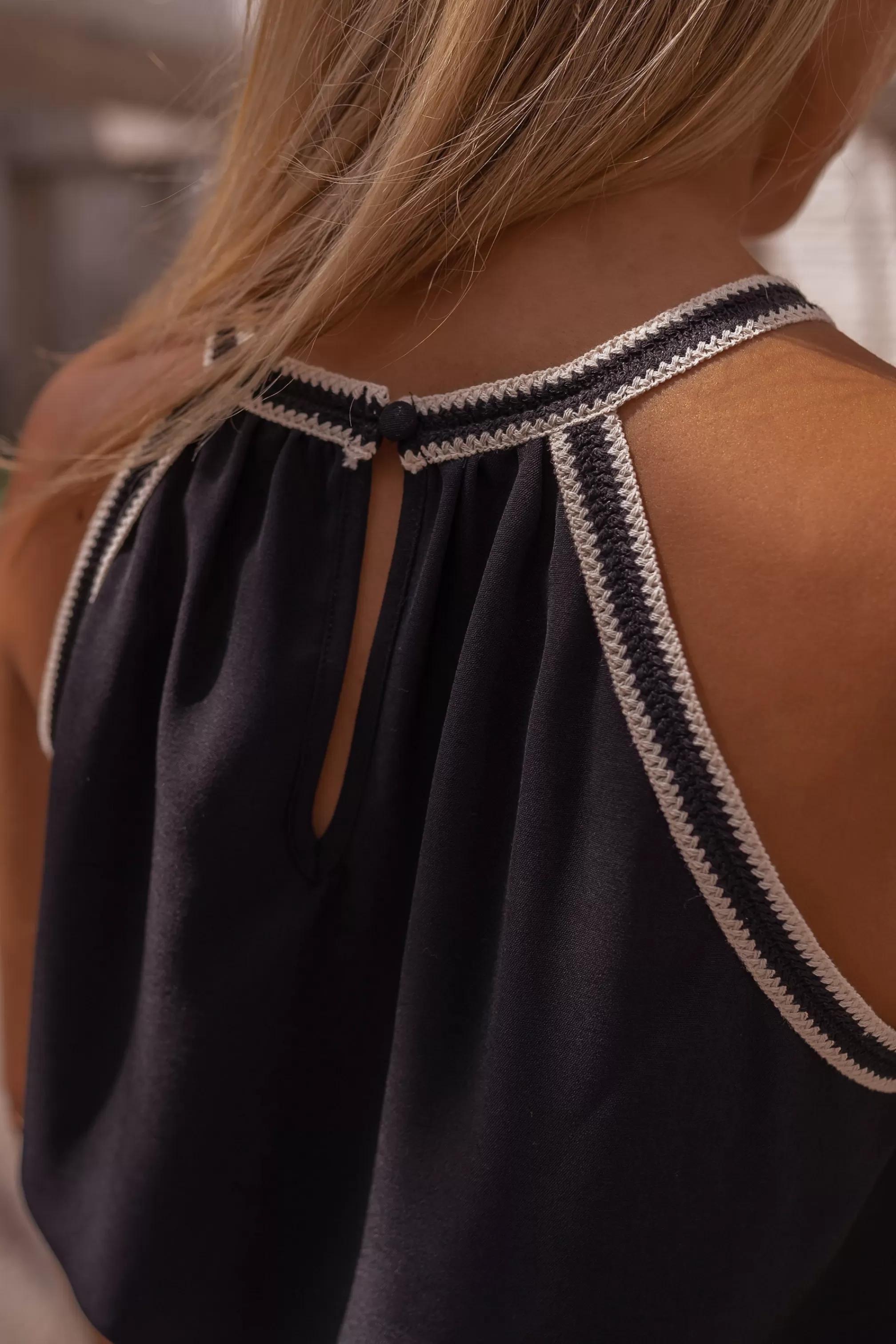 - One button at the neck